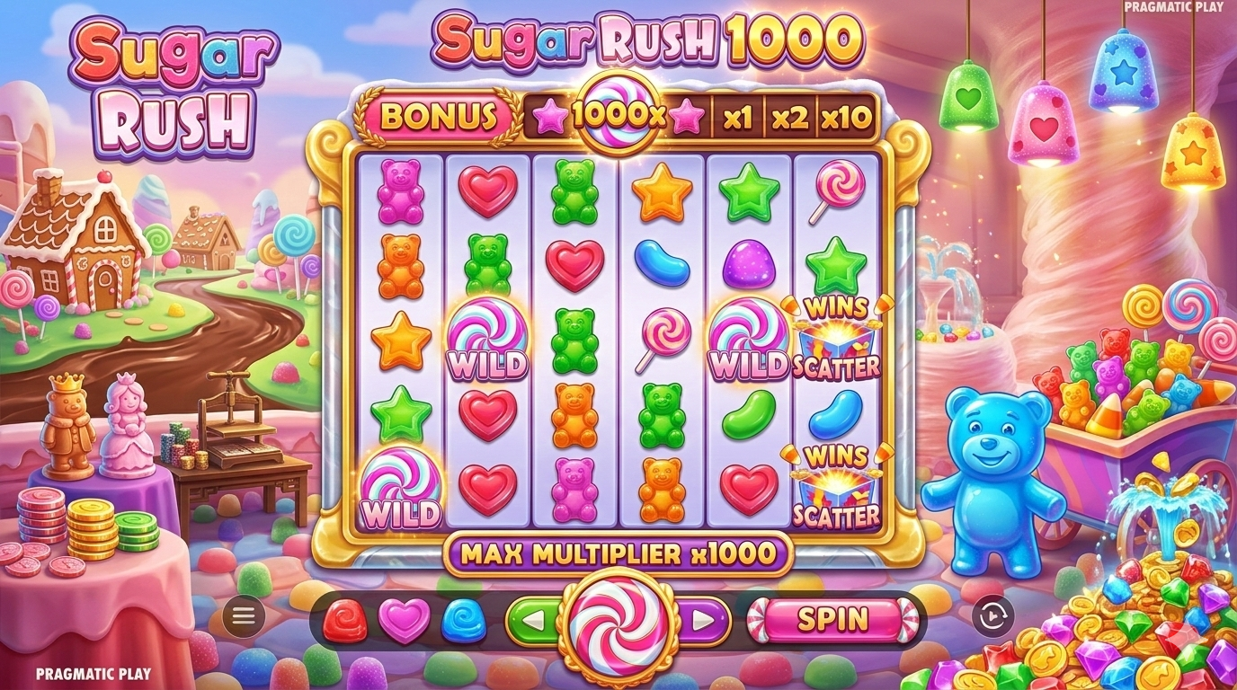 - Sweet Bonanza – Simbol buah dan permen meledak, multiplier global bertambah, sering menghasilkan win besar tanpa payline tradisional.